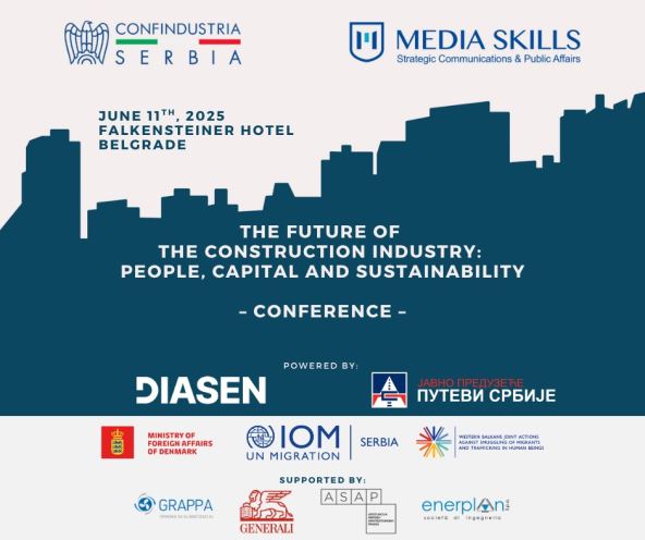 Konferencija “BUDUĆNOST GRAĐEVINSKE INDUSTRIJE: ljudi, kapital i održivost" održava se u sredu, 11. juna 2025, sa početkom u 10 časova u hotelu Falkensteiner u Beogradu.