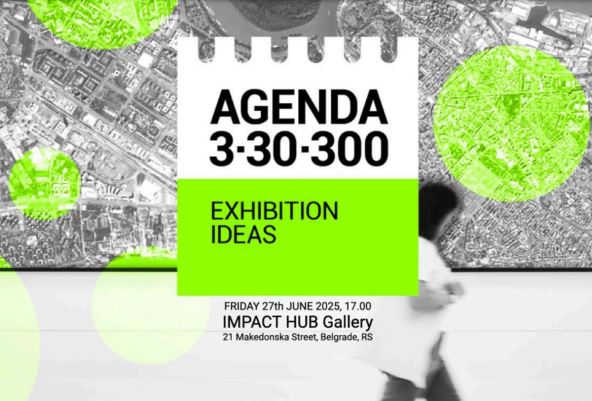 Povodom promocije projekta Agenda 3-30-300, u petak, 27. juna 2025. godine, u 17.00 časova u galerijskom prostoru Impact Hub Beograd, biće otvorena izložba „Zeleniji gradovi – Princip 3-30-300 na delu“. Izložba predstavlja rezultate rada međunarodnih timova mladih dizajnera koji su prošlog maja kroz vizuelne narative prikazali kako se tri različita beogradska naselja mogu transformisati uz primenu ovog Principa.