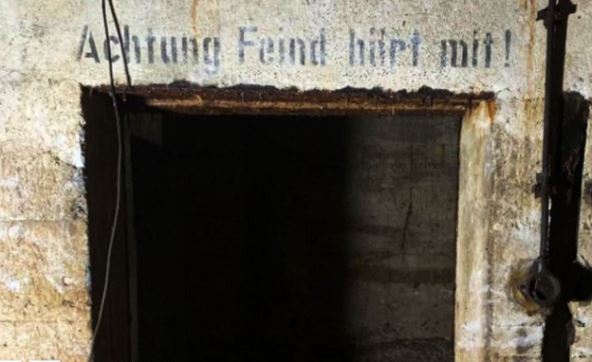 Na zidovima su i dalje vidljivi nemački natpisi, uključujući upozorenje "Achtung, Feind hört mit" (Pazi, neprijatelj prisluškuje), što dodatno svedoči o njegovoj vojnoj nameni.