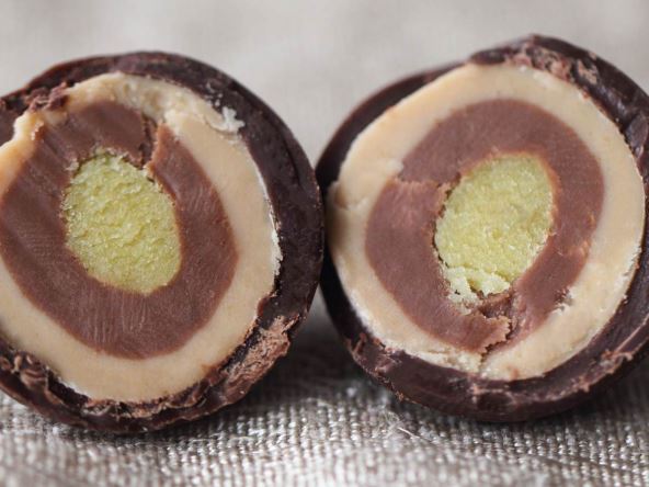 Reč je o kuglastoj čokoladnoj poslastici punjenoj marcipanom, pistaćima i nugatom, obično obloženoj tamnom čokoladom.