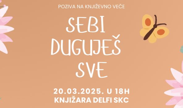"Kroz priče i refleksije iz knjige "Sebi duguješ sve", želimo da podstaknemo žene da pronađu snagu u sebi, da ne zaborave na sopstvenu vrednost i da nauče kako da budu nežnije prema sebi u trenucima izazova. Ovo književno veče je prilika za zajedničku podršku i osnaživanje", poručuju organizatori.