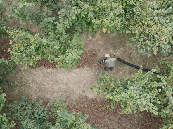 On je svoj prvi zasad posadio sa 22 godine, a sada ima 700 stabala na 1,8 hektara. Pola je u devetoj godini, a pola u petoj. Ovi koji su skoro u punom rodu, daju pet do osam kilograma po stablu. Prošle mu je godine prinos bio smanjen jer su ga potukle dve oluje i grad, no zato je 2022. bila dobra kada je na 250 stabala starih osam godina dobio 1,2 t.