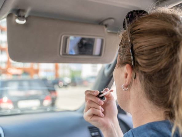 Prema novim pravilima, upotreba ogledala na viziru dok je motor uključen, bilo da se vozilo kreće ili stoji, svrstava se u istu kategoriju prekršaja kao korišćenje mobilnog telefona, jedenje za volanom ili podešavanje GPS-a u toku vožnje.