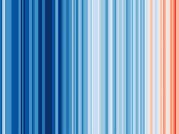 Svaka klimatska štrafta prikazuje prosečnu temperaturu u datoj godini u poređenju sa prosečnom temperaturom od 1961. do 2010. Nijanse plave označavaju godine koje su bile hladnije od posmatranog proseka, a nijanse crvene one toplije.