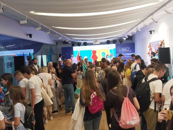 Luka i Sara su učenici Privatne srednje škole EPA a na događaj povodom Evropskog dana jezika došli su da nauče nešto o evropskim jezicima i kulturama Foto: EUpravo zato/Milena Antonijević
