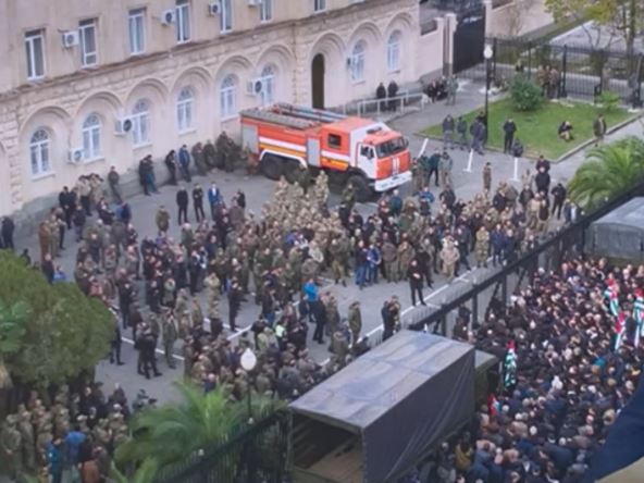 Pres služba Aslana Bžanije saopštila je da on daje ostavku "da bi održao stabilnost i ustavni poredak" i da su se dve strane složile da demonstranti koji su upali u parlament u Suhumiju moraju da se raziđu danas.