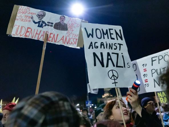 Demonstranti ispred zgrade vlade držali su transparente na kojima je pisalo: "Ne želimo krajnje desničarsku Austriju" i "Nikad više sada".