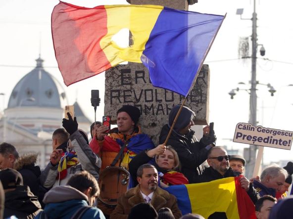 U nedjelju se na hiljade demonstranata, uključujući i levičare i one koje je razbesnelo poništenje izbora, pridružili protestu koji je organizirala opoziciona desničarska stranka Savez za ujedinjene Rumunije (AUR), druga najveća rumunska stranka.
