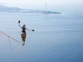 Neverovatan podvig atletičara! Na žici prošetao 3,5 km od italijanskog kopna do Sicilije pa pao 80 m pre kraja (VIDEO)